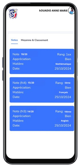 Grâce à notre système numérique avancé, les parents peuvent consulter les notes, bulletins, et suivre la progression de leur enfant en temps réel.
